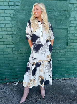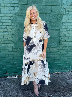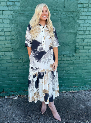 Lior knocks it out of the park again with this incredible dress, Vega,which features side pockets, a button-down v-neck collar, and a tiered hem. Fabricated with mostly cotton, this dress will make you stand out at any event. It offers a unique one of a kind print.