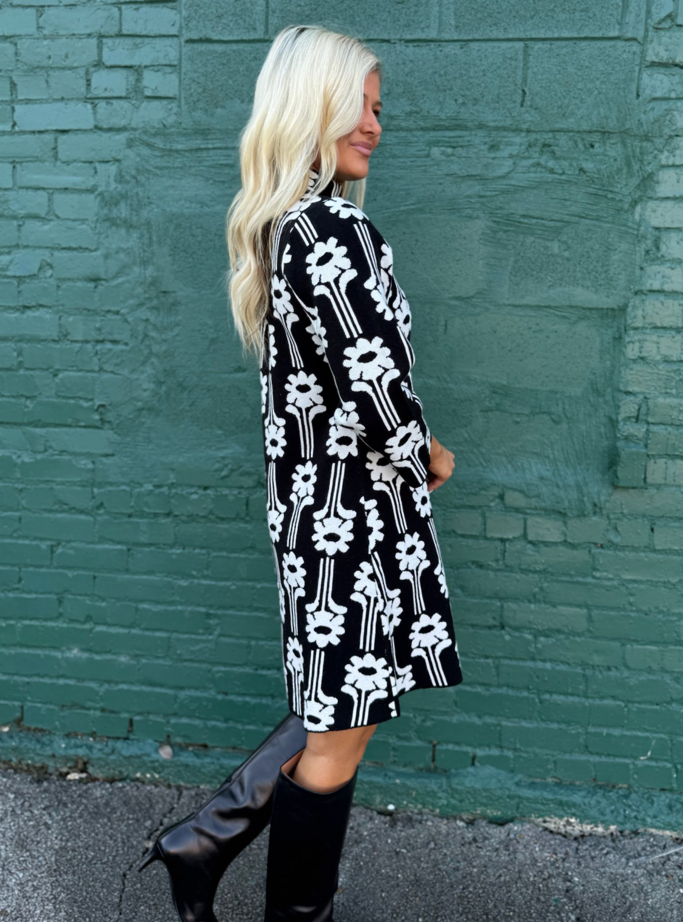 Featuring a mock neckline, soft knit fabric, and a flattering A-line silhouette, this dress by Uncle Frank makes a bold statement without trying too hard. The oversized daisy pattern adds playful contrast, while the ¾ sleeves and mini length keep it effortlessly wearable.