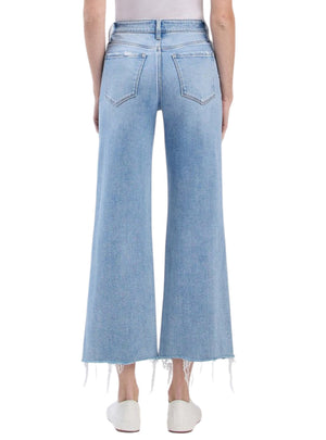 Say hello to your new denim obsession — these light-wash distressed wide-leg jeans are the perfect mix of edgy and effortless. Designed with a high-rise fit and relaxed silhouette, they feature strategic knee rips and a raw, frayed hem for that lived-in, laid-back vibe. Crafted from soft, premium denim, these jeans bring comfort and cool-girl energy together in one perfect pair.