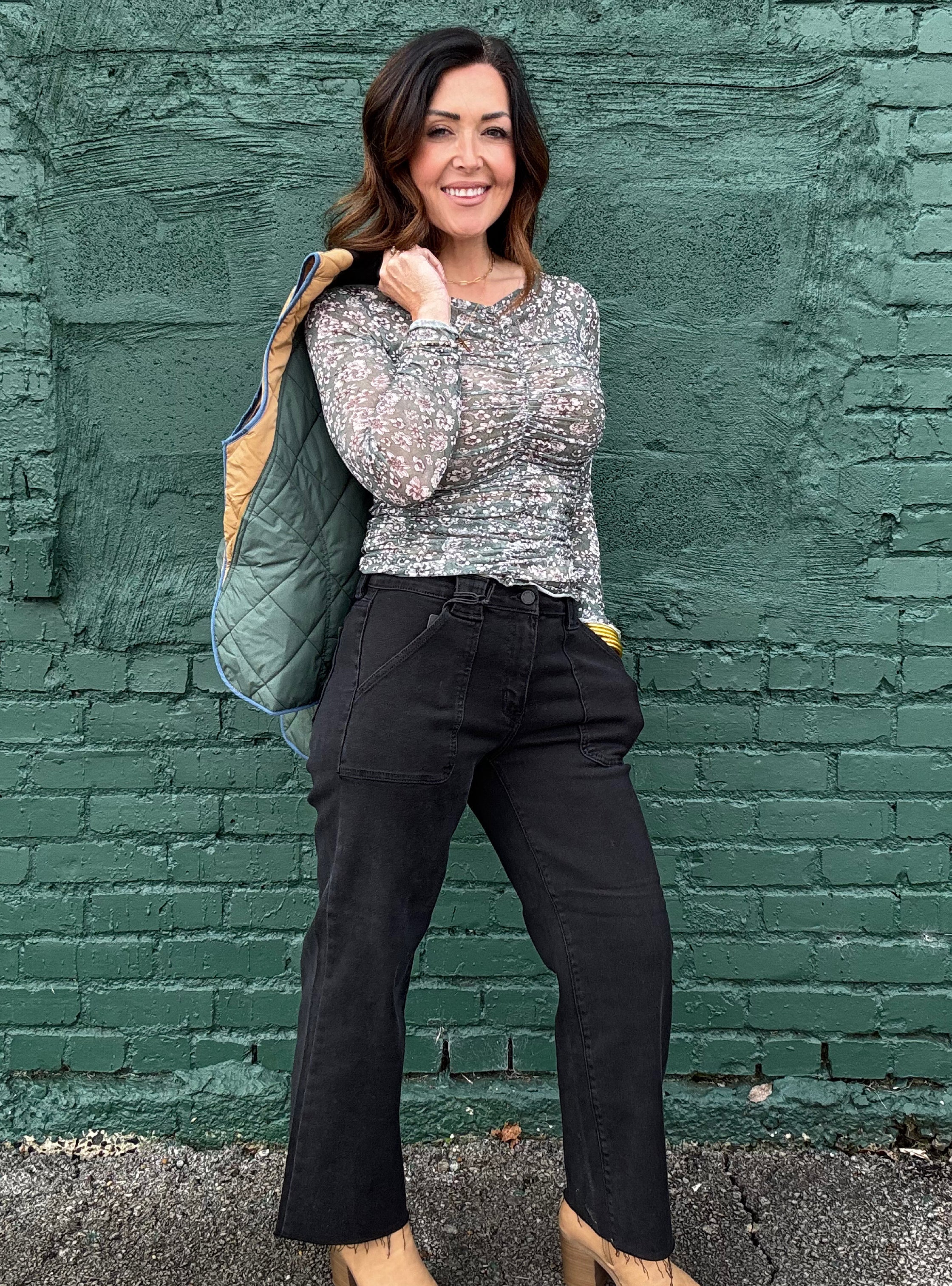 Mesh Moments Ruched Top - Green