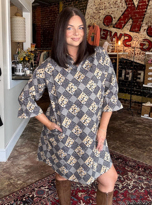 Turn heads this season in our Boho Chic Printed Quilted Leopard Dress. Featuring a bold diamond pattern with playful pops of animal print, this dress strikes the perfect balance between chic and edgy. The relaxed, flowy fit keeps it effortlessly comfortable, while the collared neckline and cuffed sleeves add a polished touch.